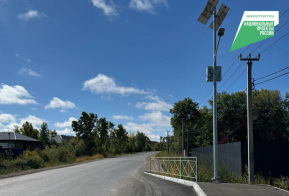 Для повышения безопасности установлен автономный светофор, работающий на солнечных батареях и обеспечивающий двустороннее регулирование движения.