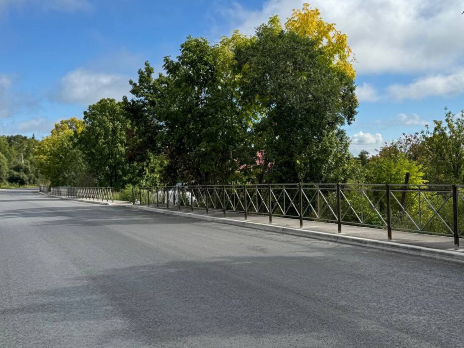 Специалисты подрядной организации выполнили целый комплекс работ: ликвидировали пучины, произвели срезку кустарника и мелколесья, расчистили кюветы и демонтировали устаревшие дорожные знаки. Также проведена планировка откосов и фрезерование старого асфальтобетонного покрытия, отремонтирована водопропускная труба, устроен выравнивающий слой и уложен новый верхний слой асфальтобетона, установлено новое перильное ограждение на тротуарах.